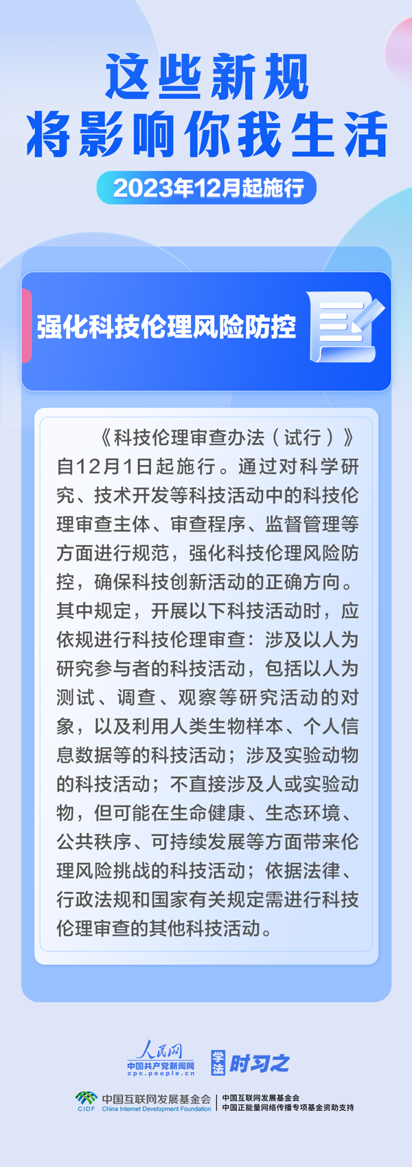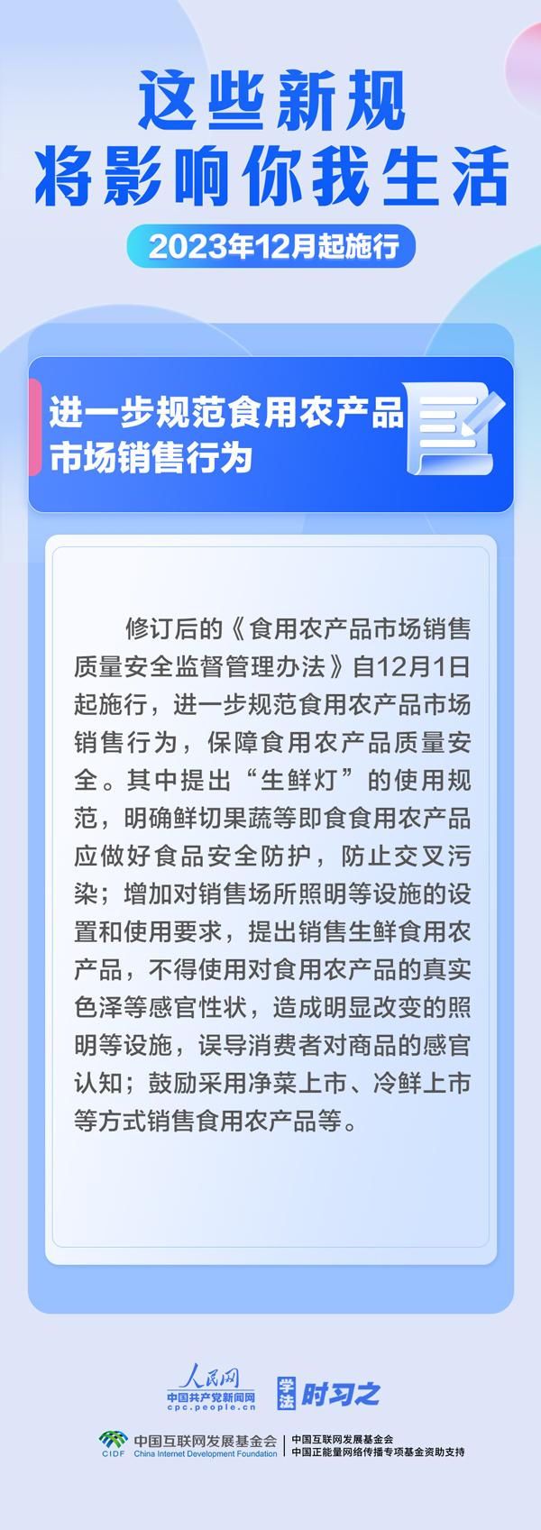 明確社保經(jīng)辦便民利民要求;強化科技倫理風險防控;進一步規(guī)范食用農(nóng)產(chǎn)品市場銷售行為……12月,這些新規(guī)施行,將影響你我生活。(薄晨棣)