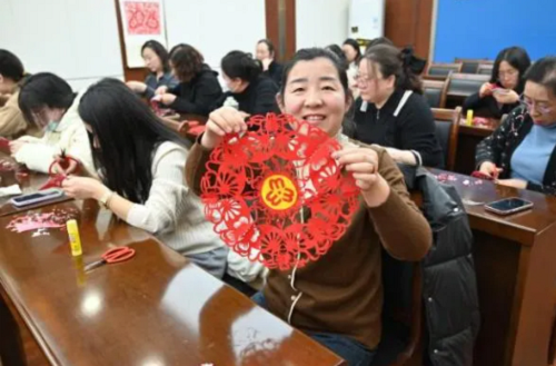 活動現(xiàn)場歡聲笑語不斷,平日里手握案卷、伏案辦案的女檢察干警們化身“非遺匠人”,在傳統(tǒng)與現(xiàn)代的交織中釋放壓力、陶冶情操。“每一剪都像辦案一樣需要耐心和細致”“剪去冗余,留下精華,這和工作追求極致不謀而合”——干警們從剪紙藝術中品悟檢察工作的匠心之道。