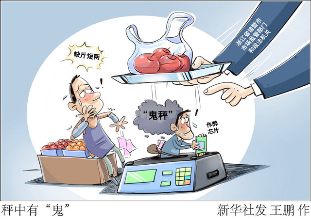 一臺小小的“鬼秤”,不僅侵害群眾合法權益,更有損公平誠信的市場環(huán)境。執(zhí)法部門要主動作為,為公序良俗撐腰,讓群眾利益得到保障;另一方面,遭遇缺斤短兩問題,消費者也不要忍氣吞聲,多和不法現象“較真”:買完菜上“安心秤”復稱一下,對不法行為堅決舉報。大家合力,一起讓“鬼秤”無處遁形。