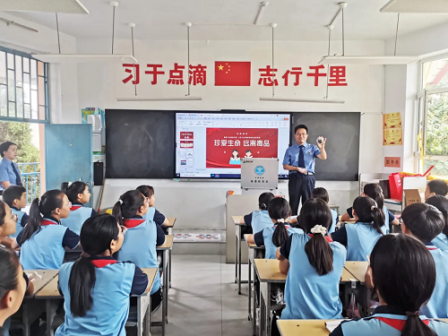 課堂上,檢察官、法官們以圖文并茂的方式,為高年級同學們講授毒品的概念、種類,打擊毒品違法犯罪的相關(guān)法律規(guī)定,毒品犯罪的社會危害性,以及我國為國際禁毒事業(yè)做出的成績。