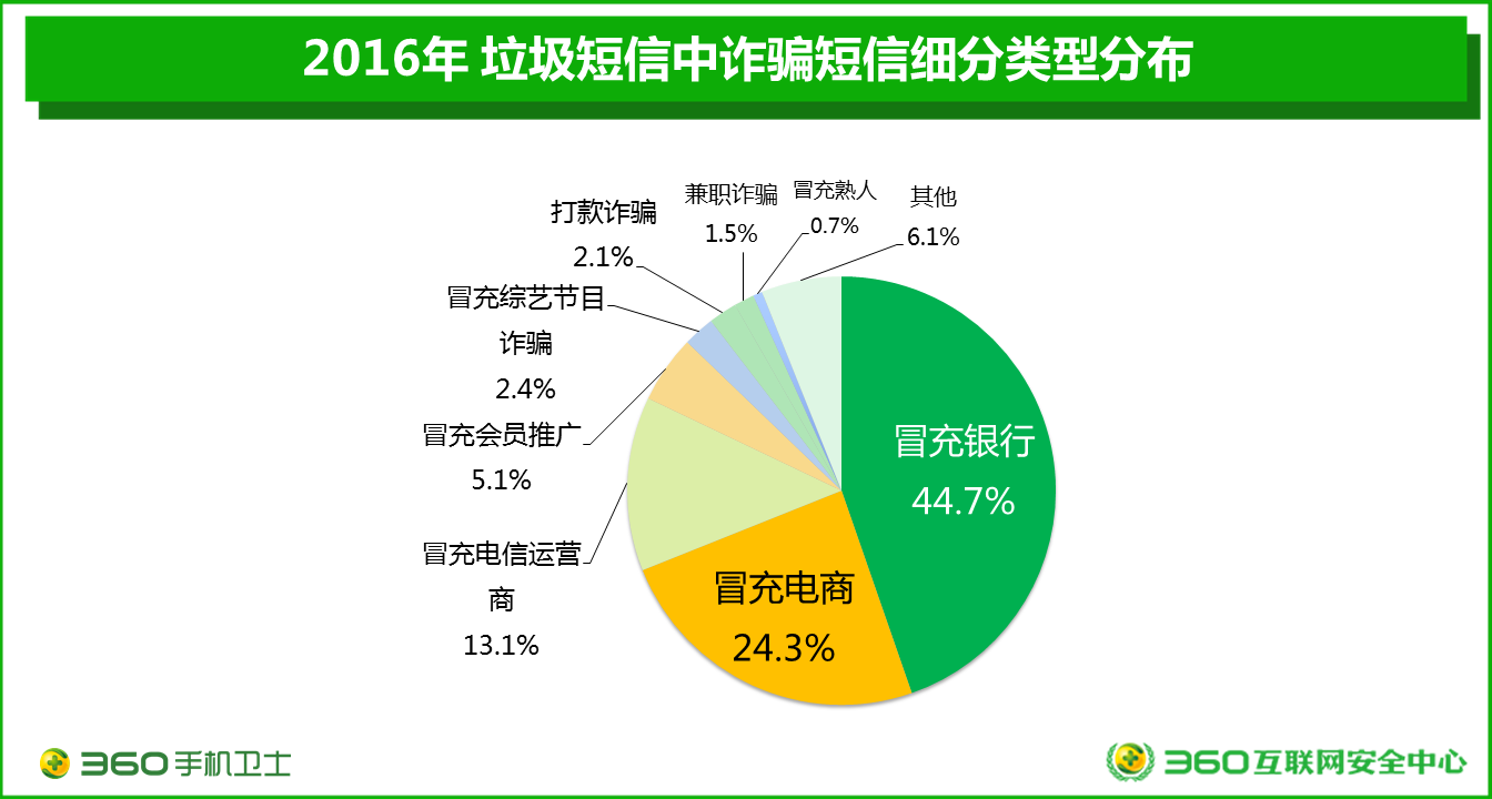在最危險的詐騙類短信中,不法分子最愛冒充“官方”。其中,冒充銀行、冒充電商、冒充電信運營商成為不法分子心中的TOP3,分別占比44.7%、24.3%、13.1%。隨著技術和能力的提升,不法分子如今更擅長在詐騙短信中附加短網(wǎng)址,尤其是偽基站發(fā)出的詐騙短信,一旦用戶點擊,很可能緊接著是下載一個有病毒的安裝包,進而掉入騙子的陷阱,最終導致上當受騙。