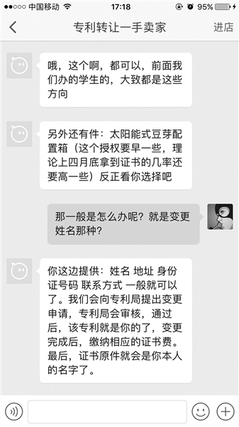 在一家機構(gòu)網(wǎng)店上,北青報記者看到,曾經(jīng)購買過“實用新型專利申請或轉(zhuǎn)讓”的賣家評價稱,“感覺很方便,不用自己一個人絞盡腦汁熬夜了,服務為自己省了很多力,果然人多力量大,相信最后能拿到證書?!?/p>