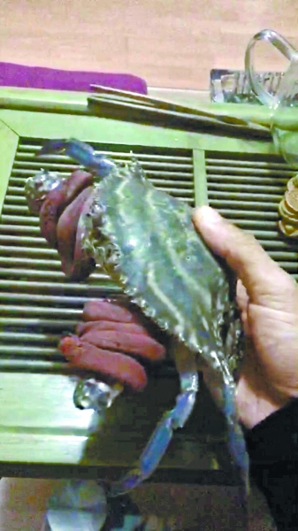 荀先生和愛人都是從小在海邊長大的,特別愛吃海鮮。昨天,愛人囑咐荀先生繞道海鮮市場買幾只螃蟹回來解饞。下午5點半左右,荀先生趕到位于光彩路的京深海鮮市場,在對比了多家商鋪之后,他在一家海鮮行選了4只赤甲紅蟹。