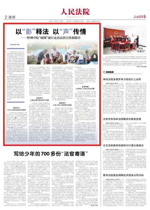 線下,項(xiàng)目注重場(chǎng)景融合,讓法治宣傳融入日常。微電影成為“公眾開(kāi)放日”“青少年法院行”“代表委員視察”的必備內(nèi)容,到訪者在光影流轉(zhuǎn)中讀懂法院工作,實(shí)現(xiàn)了從看電影到學(xué)法律的自然延伸,與“忻說(shuō)法”“讓群眾在閑暇之余學(xué)習(xí)法律知識(shí)”的初衷不謀而合。