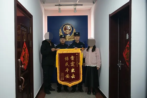 3月16日,被救助男子家屬專程來到定襄縣公安局巡特警大隊(duì),將一面印有“雷霆出擊 保民平安”大字的錦旗鄭重交到民輔警手中,言辭懇切,感激之情溢于言表。