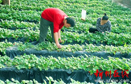 2月4日,原平市柳巷村農(nóng)民岳彬彬正在進(jìn)行草莓管理,新春佳節(jié)期間為觀光 游人們開園采摘。該市積極引導(dǎo)農(nóng)民大力發(fā)展觀光生態(tài)旅游農(nóng)業(yè),已成為農(nóng)民增收致富的新亮點(diǎn),加快了奔小康的步伐。(趙春曉 攝)