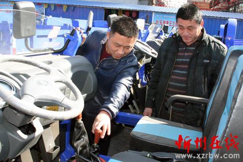 2月20日,原平市子干村的農(nóng)民正在農(nóng)機(jī)銷售處挑選時(shí)風(fēng)農(nóng)用車,春節(jié)過(guò)后,該市農(nóng)機(jī)市場(chǎng)紅紅火火,農(nóng)民們?cè)鐐涓?,為今年的春耕生產(chǎn)打下良好基礎(chǔ)。(趙春曉 攝)