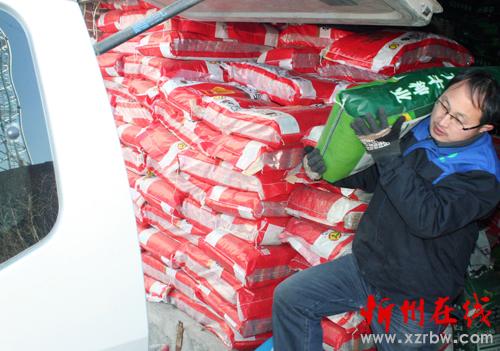 2月21日, 原平市大豐種業(yè)的人員,正在為北郭下村的農(nóng)民拉用種子送貨上門服務,受到農(nóng)民歡迎。目前該市 農(nóng)民們已經(jīng)開始購買各種、種子化肥等,為今年春耕備耕生產(chǎn)提前做好準備 ,打下堅實基礎。(趙月仁 攝)