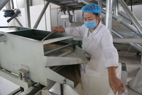 7月22日,靜樂縣華青藜麥產(chǎn)品開發(fā)有限公司的員工在篩選藜麥產(chǎn)品。這個綜合性農(nóng)業(yè)開發(fā)企業(yè),堅持走“企業(yè)管理+種植基地”的運作模式,積極推動藜麥、小雜糧等規(guī)模化種植經(jīng)營,成為當?shù)貛ьI農(nóng)民致富的龍頭企業(yè)。(閆曉梅 攝)