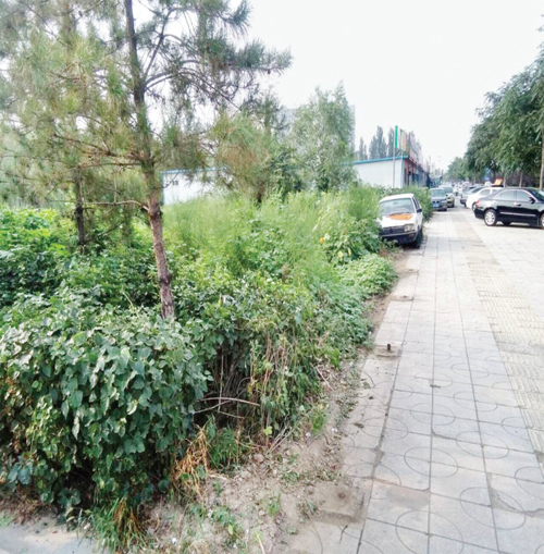 隨著我市城市建設(shè)工作的不斷推進(jìn),城區(qū)環(huán)境有了新的變化。新修的道路寬敞整潔,道路兩旁的花草苗木將城市點(diǎn)綴得亮麗多彩。然而,在新建北路一側(cè),卻難尋綠化蹤跡,瘋狂生長的野草“霸占”了近500米的地帶,與周圍的優(yōu)美環(huán)境格格不入。