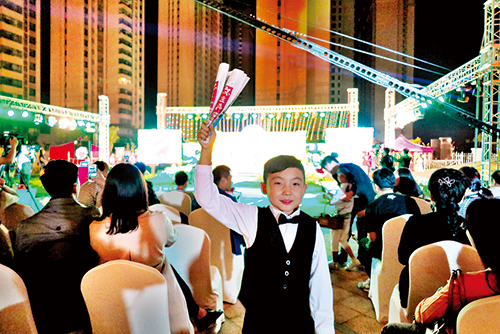 月光皎潔,清輝遍灑,這夜雖是農(nóng)歷八月十三,月亮卻已迫不及待地圓了起來。花好月圓、春花秋月、花前月下……月宮是神話中的仙境,而此時(shí)泛華酒店的后花園里也如仙境一般,琴、詩、書法共同演繹《春江花月夜》,讓現(xiàn)場的500余名觀眾如癡如醉。面容清秀、刺繡大紅旗袍在身的琴師端坐在舞臺(tái)的左側(cè),雙手拂動(dòng),琴聲綿綿,舒心悅耳;鋪紙、執(zhí)筆、蘸墨、揮毫,舞臺(tái)中央的呂峰仿佛置身自家書房之中,墨香中三幅書法作品轉(zhuǎn)瞬完成;“醉眼看世界,朦朧看人生……李白醉了,醉了!”舞臺(tái)右側(cè)的朗誦者孫美琴將李白的一生揉碎在他的詩中,就著朦朧的月色,用獨(dú)特的聲線摻在她的情感中,沉醉了自己,也迷醉了觀眾。