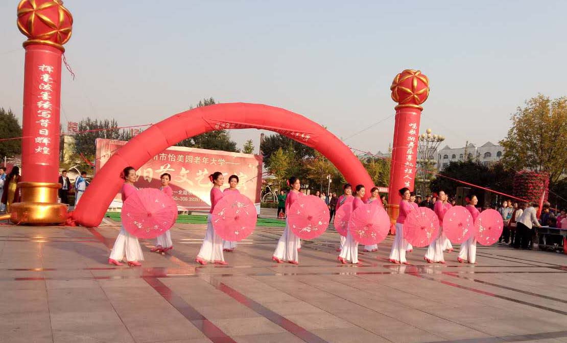 “唱歌跳舞樂享燦爛人生,揮毫潑墨續(xù)寫昔日輝煌?!睘榇罅霌P(yáng)中華民族尊老愛老的傳統(tǒng)美德,積極培育和踐行社會(huì)主義核心價(jià)值觀,營(yíng)造“敬老、尊賢、守孝”的濃厚氛圍。10月9日,農(nóng)歷九月初九“重陽(yáng)節(jié)”,忻州市怡美園老年大學(xué)在和平廣場(chǎng)舉辦了文藝匯演活動(dòng),以歌舞、演唱、小品、朗誦等表演為全市老年朋友送上節(jié)日祝福。