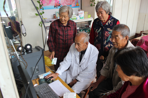 來(lái)到北義井村衛(wèi)生所,不足20平米的診療室里已經(jīng)站滿了患者。醫(yī)師張喜旺向高血壓病人李梅蘭詢問(wèn)病情后又為其測(cè)量了血壓。緊接著,他打開(kāi)區(qū)域衛(wèi)生信息管理平臺(tái),拿著農(nóng)村合作醫(yī)療卡在刷卡機(jī)上一刷,信息就自動(dòng)提取到平臺(tái),張喜旺結(jié)合病人病情開(kāi)了電子門(mén)診處方并下藥,費(fèi)用直接從農(nóng)合醫(yī)療卡中扣除,整個(gè)過(guò)程不到十分鐘。張喜旺說(shuō),村民們大都都是奔著診療方便和藥品范圍內(nèi)免費(fèi)而來(lái),這也大大緩解了村民看病難的問(wèn)題。