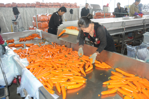 豐收季節(jié),耀入眼簾的是一顆顆閃著金黃燦爛光芒的優(yōu)質(zhì)胡蘿卜,經(jīng)過流水作業(yè)清洗,由員工的巧手整理包裝入袋,經(jīng)包裝運往江蘇等地,帶動周邊地區(qū)近3000農(nóng)戶受益。圖為綠源亨通視頻有限公司胡蘿卜流水作業(yè)生產(chǎn)線。(喬偉 侯曉敏)