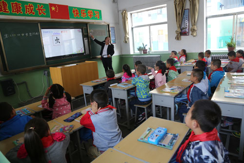 近日,在靜樂縣愛樂希望小學(xué),學(xué)生正通過交互式多媒體教學(xué)方法上課。老師高興地說:“有了多媒體真方便,以前講一個(gè)例題要花幾分鐘抄寫在黑板上,現(xiàn)在只需幾秒鐘就顯示在頻幕上,既節(jié)省時(shí)間又提高課堂效率?!苯陙?,該縣加大教育投資力度,改善辦學(xué)條件,為學(xué)生上課提供便利。(閆曉梅 攝)
