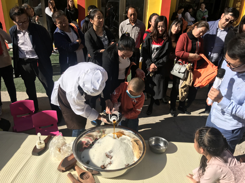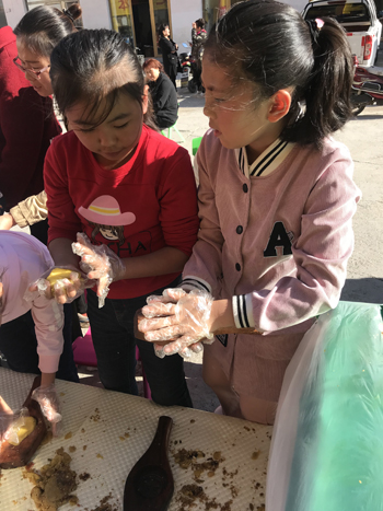 一方水土養(yǎng)一方人,一塊小餅生一地財(cái)。神池縣大人、小孩特別感恩當(dāng)?shù)卣龑?dǎo)農(nóng)民把地產(chǎn)胡油自然資源優(yōu)勢(shì)傳化為商品經(jīng)濟(jì)優(yōu)勢(shì),以月餅帶動(dòng)當(dāng)?shù)剞r(nóng)民脫貧增收發(fā)展經(jīng)濟(jì)的功勞。9月16曰,該縣一家校外語(yǔ)言培訓(xùn)機(jī)構(gòu)在金口玉言口才學(xué)校的校園里別開生面舉辦了“迎中秋食品安全知識(shí)宣傳暨傳承神池傳統(tǒng)月餅手工戶外體驗(yàn)活動(dòng)”。此舉不僅培養(yǎng)了小孩熱愛家鄉(xiāng)的意識(shí)和感恩心理,也提高小孩熱愛勞動(dòng)的動(dòng)手能力,同時(shí)加強(qiáng)孩子們的食品安全知識(shí),受到好評(píng)。記者現(xiàn)場(chǎng)看到,家長(zhǎng)們從家里帶來了烤箱,學(xué)校準(zhǔn)備好了玫瑰、青紅絲、核桃仁、花生米、葡萄干、芝麻等餡料,孩子們你一言我一語(yǔ)討論著自己動(dòng)手做月餅的事,在觀看面點(diǎn)阿姨細(xì)致地講解與示范后,每個(gè)小朋友都躍躍欲試,體驗(yàn)親手做家鄉(xiāng)特產(chǎn)的樂趣。