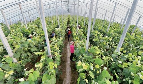 范艷偉面色黝黑,身體健壯。他說,縣委張書記每年來他這里七、八次。上回一見面就拍著他的肚子說:看來今年掙得不少,肚子也吃起來了。前年,范艷偉新建設(shè)施農(nóng)業(yè)資金緊張,張書記還幫他貸到100萬元。由范艷偉牽頭組建的富達(dá)瓜菜農(nóng)業(yè)合作社設(shè)施農(nóng)業(yè)總面積目前達(dá)到630畝,其中下凹式暖棚22座,移動大棚23座。下凹式暖棚每畝年收入6萬元,移動大棚每畝年收入3萬元。現(xiàn)在,定襄縣設(shè)施農(nóng)業(yè)總面積已達(dá)到10000畝,把定襄打造成“山西壽光”的奮斗目標(biāo),正在一步步成為現(xiàn)實(shí)。