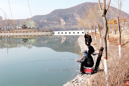 春天的五臺縣唐家灣水庫景色秀美,靜謐悠雅,吸引得市民們?nèi)宄扇?,或散步游玩,或垂釣娛樂。隨著春天的來臨,環(huán)境的不斷改善,走出家門,走近大自然,成為縣城居民們新的生活方式。圖為市民在水庫邊釣魚。金俊賢 攝
