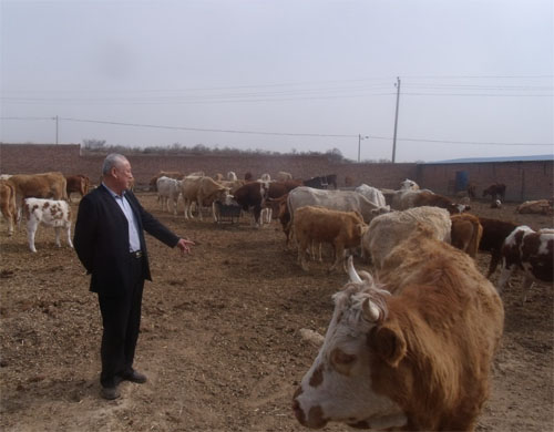 站在牛群中,老劉身形高大,一副“牛司令”的派頭。他看看這頭牛,又摸摸那頭牛,指著一頭黃白花色的牛說(shuō):“這叫西蒙達(dá)爾牛,原產(chǎn)于瑞士西部的阿爾卑斯山區(qū)。這頭體型高大的牛叫夏洛萊,原產(chǎn)于法國(guó)中西部到東南部地區(qū),是舉世聞名的大型肉牛品種,生長(zhǎng)快、肉量多、耐粗放,很受國(guó)際市場(chǎng)歡迎。”