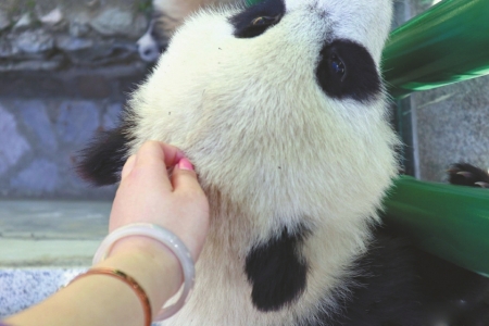 她如何摸到大熊貓寶寶?