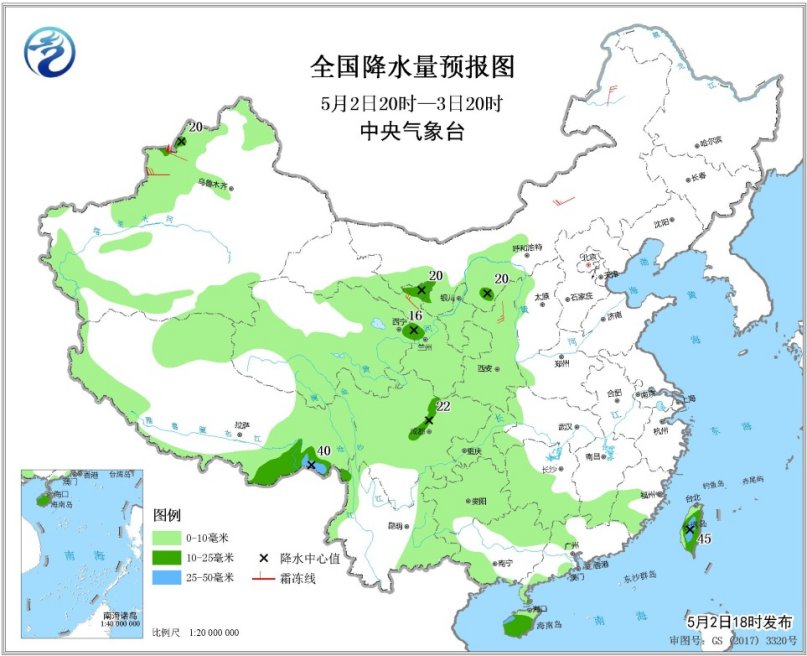 5月3日20時至4日20時,新疆北部、西藏東部和南部、西北地區(qū)中東部、西南地區(qū)東部和南部、華北大部、黃淮西部、江南中西部、華南中西部、臺灣島等地的部分地區(qū)有小到中雨,其中,西藏東南部、廣西北部等地的部分地區(qū)有大雨(25~45毫米)。新疆南疆盆地和沿天山地區(qū)、內(nèi)蒙古、甘肅河西等地的部分地區(qū)有4~6級風,新疆南疆盆地和內(nèi)蒙古西部有揚沙或浮塵天氣。南海東北部部分海域風力可達8級、陣風9級。