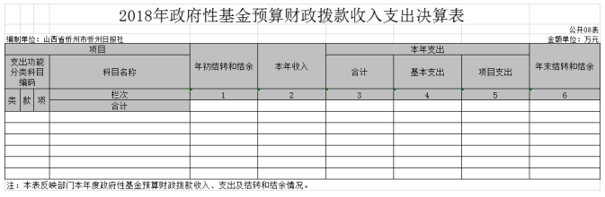 (五)政府性基金決算情況:忻州日報社不涉及政府性基金,故政府性基金決算支出為0.