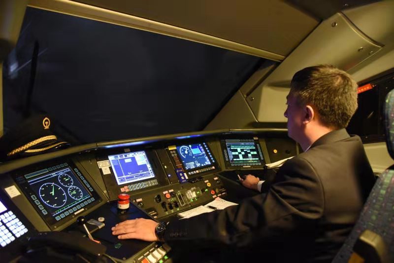 當(dāng)D6770次列車到達(dá)呼和浩特東站,弓國慶登上機(jī)車,與換班司機(jī)交接完畢后,插入IC卡,認(rèn)真核對(duì)行車數(shù)據(jù)、確認(rèn)操縱臺(tái)各儀表……各項(xiàng)安全準(zhǔn)備工作無誤后,隨著機(jī)車前方發(fā)車信號(hào)變?yōu)榫G燈,與車站進(jìn)行車機(jī)聯(lián)控確認(rèn),隨著一聲汽笛長(zhǎng)鳴,動(dòng)車組緩緩駛出呼和浩特東站?!皬氐撞t望,確認(rèn)信號(hào),高聲呼喚,手比眼看”的標(biāo)準(zhǔn)化作業(yè)與每三十秒腳踩提醒踏板的一系列操作流暢默契……盡管這種周而復(fù)始的工作他已重復(fù)了成千上萬遍,但從不敢松懈。