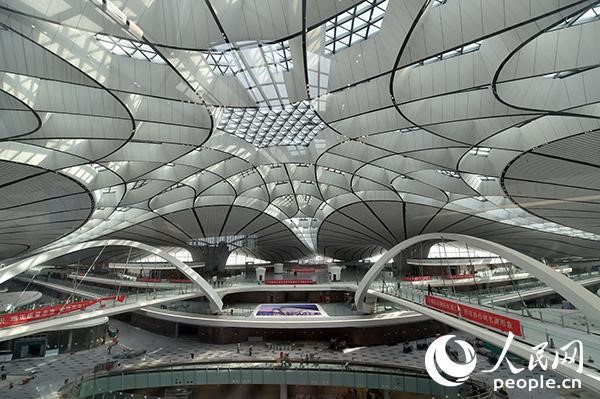 北京大興國際機(jī)場(chǎng)作為獻(xiàn)禮新中國成立70周年的國家標(biāo)志性工程,地處京津冀核心地帶,是未來國家乃至世界級(jí)綜合交通樞紐。從空中俯瞰海星狀的航站樓,五個(gè)支廊呈放射狀從航站樓中心向外延伸出去,像一只鋼鐵大鳥展翅欲飛。