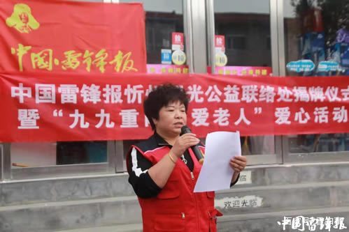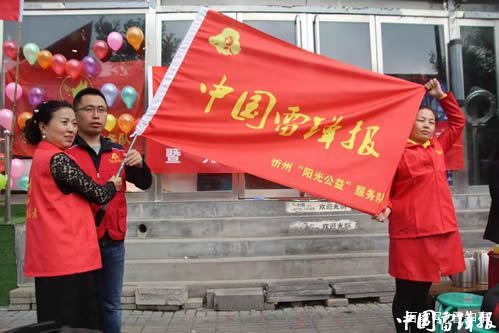 儀式上,中國雷鋒報忻州工作站副站長溫曉軍為陽光公益聯(lián)絡處揭牌,副站長李杰慧為陽光公益服務隊授隊旗。