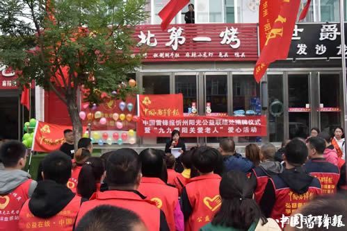 秋風送爽,丹桂飄香。10月7日,中國雷鋒報忻州區(qū)雷鋒工作站陽光公益聯(lián)絡處在九九重陽之際舉行揭牌授旗儀式,這標志著忻府區(qū)陽光公益服務隊志愿者們在六年磨礪中不斷成長壯大,最終融入到《中國雷鋒報》這個大家庭當中,爭當雷鋒精神的種子,把雷鋒精神廣播在祖國大地上。