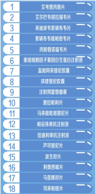 國家醫(yī)保局醫(yī)藥服務(wù)管理司司長熊先軍介紹,此次談判成功的藥品多為近年來新上市且具有較高臨床價值的藥品,涉及癌癥、罕見病、風(fēng)濕免疫、心腦血管、消化等10余個臨床治療領(lǐng)域。重點領(lǐng)域的5個基本藥物全部談判成功,22個抗癌藥、7個罕見病用藥、14個慢性?。ê悄虿?、乙肝、風(fēng)濕性關(guān)節(jié)炎等)用藥、4個兒童用藥談判成功,進一步優(yōu)化了目錄結(jié)構(gòu)。