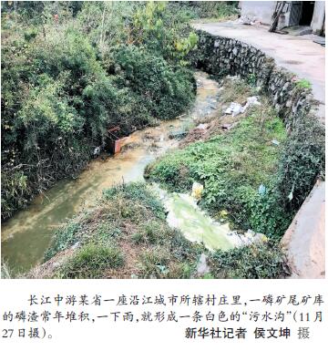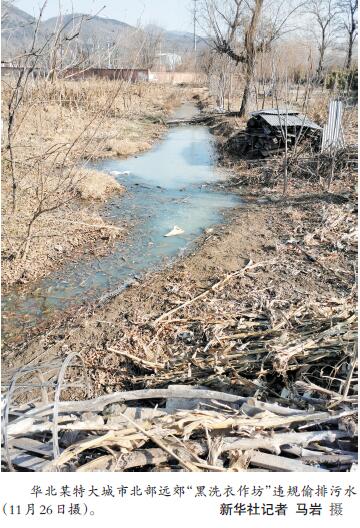 而在離城區(qū)稍遠(yuǎn)的農(nóng)村,部分不法村鎮(zhèn)小作坊等污水違規(guī)排放時(shí)有發(fā)生。檢查組發(fā)現(xiàn),長(zhǎng)江中游某省一座沿江城市所轄村莊里,一磷礦尾礦庫的磷渣常年堆積,一下雨,就形成一條白色的“污水溝”。檢查組在華北某特大城市北部遠(yuǎn)郊一村中實(shí)地檢查時(shí)發(fā)現(xiàn),該村“黑洗衣作坊”違規(guī)偷排污水,污染環(huán)境。