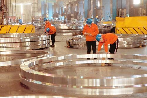 12月19日,山西天寶新能源有限公司生產(chǎn)線正滿負(fù)荷加工風(fēng)電項目配套的法蘭。該企業(yè)緊跟新能源發(fā)展步伐,今年已生產(chǎn)風(fēng)電法蘭3.3萬噸、塔筒100套,實現(xiàn)銷售收入4.06億元。其中,風(fēng)電法蘭占到國內(nèi)份額的50%。孫榮祥 攝