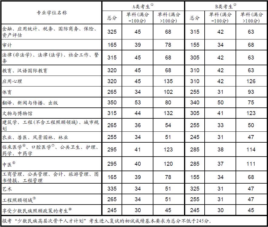 2016年全國碩士研究生招生考試考生進入復(fù)試的初試成績基本要求(專業(yè)學(xué)位類)
