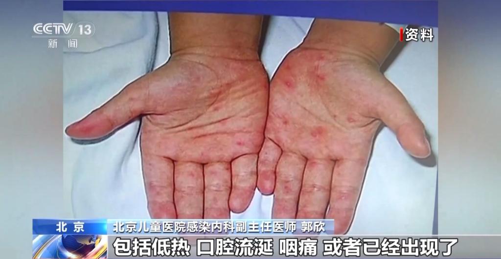 北京兒童醫(yī)院感染內科副主任醫(yī)師 郭欣:通過一些蛛絲馬跡來早期發(fā)現(xiàn),可以去仔細觀察孩子的口腔、皮膚的黏膜,通常典型的癥狀就是累及手部、腳部,還有孩子的小屁屁上,可能會出現(xiàn)小紅點。在潛伏期3—5天之后,孩子可能早期會出現(xiàn)一些包括低熱、口腔流涎、咽痛,或者已經(jīng)出現(xiàn)了手足或者臀部的這種皮疹,這樣如果出現(xiàn)這樣的癥狀,家長就一定要注意孩子可能罹患了手足口病。