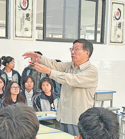 忻元華和支教的緣分,還得從2015年說起。從寧波一所高校副校長(zhǎng)崗位上退休后,他發(fā)揮自動(dòng)化專業(yè)優(yōu)勢(shì),在中小學(xué)校、社區(qū)里做科普講座。2015年,抱著試一試的想法,忻元華參加了支教志愿者團(tuán)隊(duì)。此后的9年里,從湖南溆浦到甘肅隴西,再到四川涼山,忻元華帶著自制的科學(xué)教具,跋山涉水,把科學(xué)知識(shí)帶進(jìn)大山,點(diǎn)燃孩子們對(duì)科學(xué)的熱愛。
