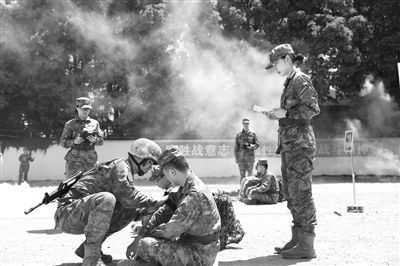海軍軍醫(yī)大學推動黨的創(chuàng)新理論“三進入”融入實戰(zhàn)化戰(zhàn)救科目訓練。李超攝