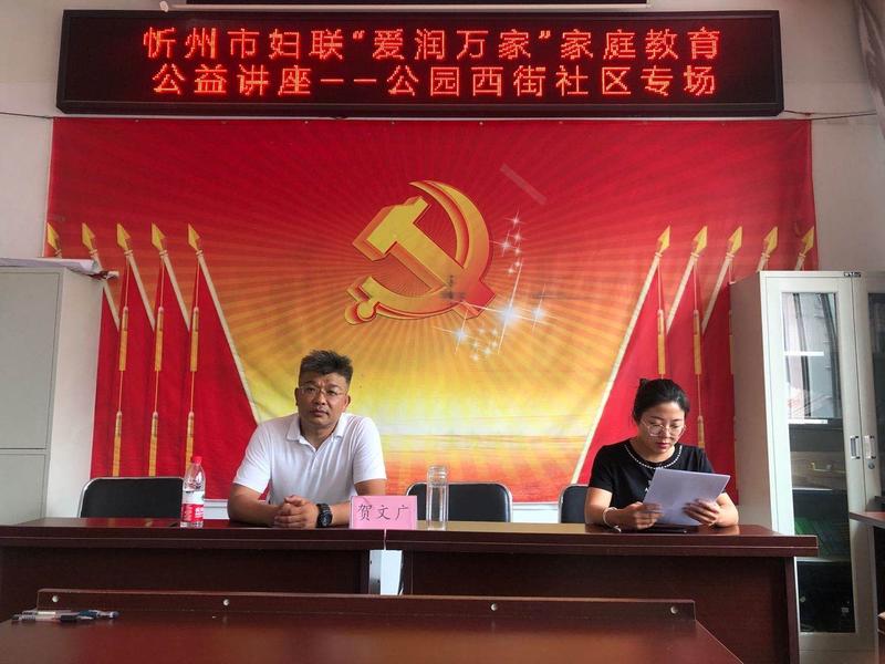 7月22日下午,忻州市長征小學(xué)組織三年級30余名學(xué)生家長在世紀(jì)花苑物業(yè)三樓參加了由忻州市婦聯(lián)組織的“愛潤萬家”家庭教育公益講座,講座由心理學(xué)研究中心賀文廣會長主持。