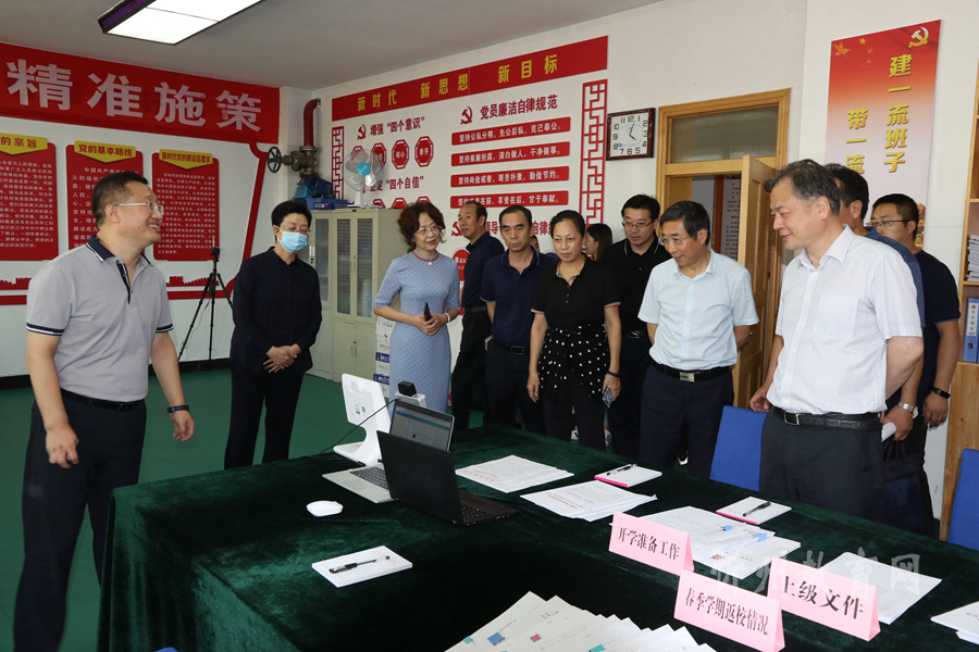 王東一行查看了定襄縣部分幼兒園、小學(xué)、初中、高中、職業(yè)中學(xué)等,實(shí)地查看了學(xué)校的疫情防控設(shè)施設(shè)備及防疫物資的儲(chǔ)備情況,翻閱了學(xué)校制定的各項(xiàng)疫情防控制度,現(xiàn)場詢問學(xué)校負(fù)責(zé)人開學(xué)準(zhǔn)備工作及疫情防控日常工作的開展情況。在忻州師院和忻州職業(yè)技術(shù)學(xué)院,王東了解了新生入學(xué)及各年級學(xué)生返校具體時(shí)間及具體措施,學(xué)校是否對外省返晉入忻的學(xué)生發(fā)放承諾書、健康卡、體溫登記表,開學(xué)后在日常教學(xué)和學(xué)校管理方面的疫情防控措施。