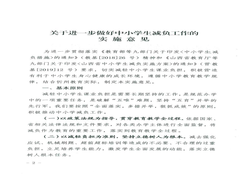 忻州市教育局印發(fā)關(guān)于進(jìn)一步做好中小學(xué)生減負(fù)工作的實施意見的通知