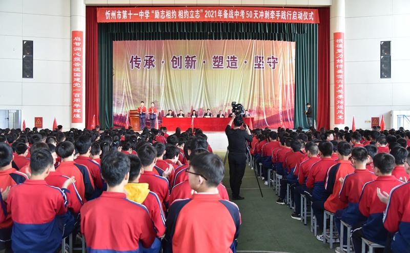 又是一年五月,陽(yáng)光明媚,又逢“五四”,血脈僨張。在五月的花海中擁抱青春的時(shí)代,在初升的太陽(yáng)下點(diǎn)燃生命的未來(lái)。為進(jìn)一步激發(fā)初三師生堅(jiān)定目標(biāo)、奮力拼搏、沖刺中考的雄心壯志,5月4日上午,忻州市第十一中學(xué)初三年級(jí)全體師生在學(xué)校文體藝苑舉行了“勵(lì)志相約、相約立志”2021屆備戰(zhàn)中考50天沖刺牽手踐行啟動(dòng)儀式,校長(zhǎng)張?jiān)崎L(zhǎng)、黨支部書記趙智剛、學(xué)校領(lǐng)導(dǎo)、部分家長(zhǎng)代表共同見(jiàn)證了這一振奮人心的時(shí)刻。