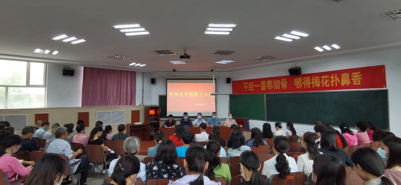 金風(fēng)喜雨送秋涼,又是一年開學(xué)忙。8月31日上午,忻州五中全體教職工齊聚階梯教室,隆重召開了2021-2022學(xué)年度上半學(xué)期開學(xué)教職工大會。