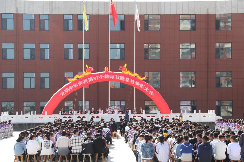 五寨縣光明中學(xué)網(wǎng)訊:金風(fēng)送爽,丹桂飄香。秋水蒹葭,不忘師恩。9月10日上午,五寨縣光明中學(xué)在校園廣場隆重舉行慶祝第37個(gè)教師節(jié)暨上學(xué)年度教育教學(xué)工作總結(jié)表彰大會(huì)。學(xué)校董事會(huì)60萬元重獎(jiǎng)優(yōu)秀教師。全校師生喜氣洋洋參加大會(huì)。