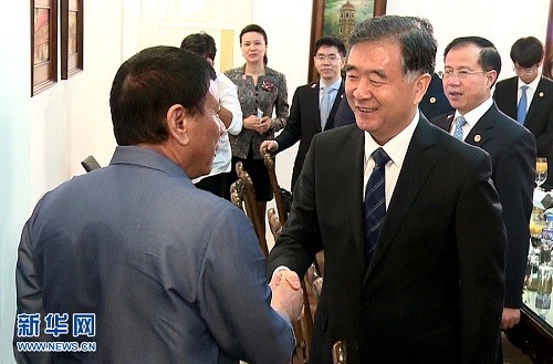 3月17日,菲律賓總統(tǒng)杜特爾特在達沃市會見在菲律賓進行正式訪問的中國國務(wù)院副總理汪洋。