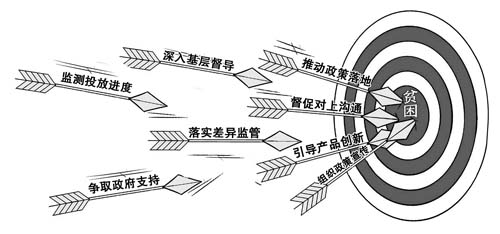 針對個別銀行業(yè)機構(gòu)信貸人員認為扶貧貸款風(fēng)險大,擔(dān)心被問責(zé)而不愿為建檔立卡貧困戶簽字放貸的情況,及時重申差異化監(jiān)管政策,要求銀行業(yè)機構(gòu)根據(jù)金融扶貧相關(guān)政策精神,適當(dāng)放寬扶貧小額信貸不良貸款容忍度,切實做到盡職免責(zé),解除工作人員的后顧之憂。