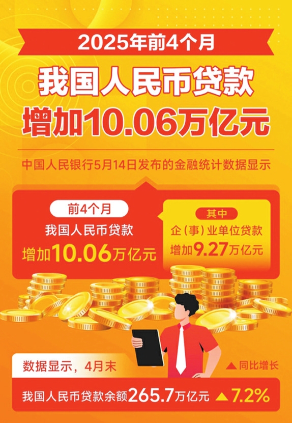 數(shù)據(jù)顯示,前4個月,我國企(事)業(yè)單位貸款增加9.27萬億元,其中中長期貸款增加5.83萬億元。也就是說,超9成的新增貸款投向了企業(yè),其中中長期貸款占比超6成,為企業(yè)投資和生產(chǎn)提供了穩(wěn)定而有力的支持。