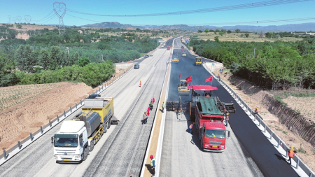 最近,國道108線改建工程(忻州段)激戰(zhàn)正酣,平地機、裝載機、瀝青攤鋪機等設備馬力全開,路面水穩(wěn)層攤鋪、滑膜機工藝澆筑中央護欄等工序正在緊鑼密鼓地進行。工人們忙碌穿梭,安全員逐項排查隱患,技術(shù)人員同步檢測施工質(zhì)量,現(xiàn)場一片繁忙有序。掀起大干快干的新高潮,已進場施工作業(yè)人員300余人,主要機械設備進場100臺套,道路項目水穩(wěn)層鋪設完成總量的80%,下面層瀝青鋪設完成總量的60%、上面層瀝青鋪設完成總量的25%,中央分隔帶護欄累計完成59.41%。涌動的數(shù)字可以折射火熱的工作場面。國道108線忻州段改建工程項目是“十四五”期間全省規(guī)模最大、里程最長、投資最多的國省干線新改建工程。今年以來,山西路橋集團忻州國道項目建設管理有限公司提前吹響決戰(zhàn)的沖鋒號,圍繞項目建設爭分奪秒搶進度。項目部正采取“白+黑”“五+二”的工作模式,組織工人對路面、路基、交安、機電、綠化采取交叉作業(yè)等方式施工,在確保質(zhì)量安全的前提下,各項工作正按照預期目標穩(wěn)步推進。