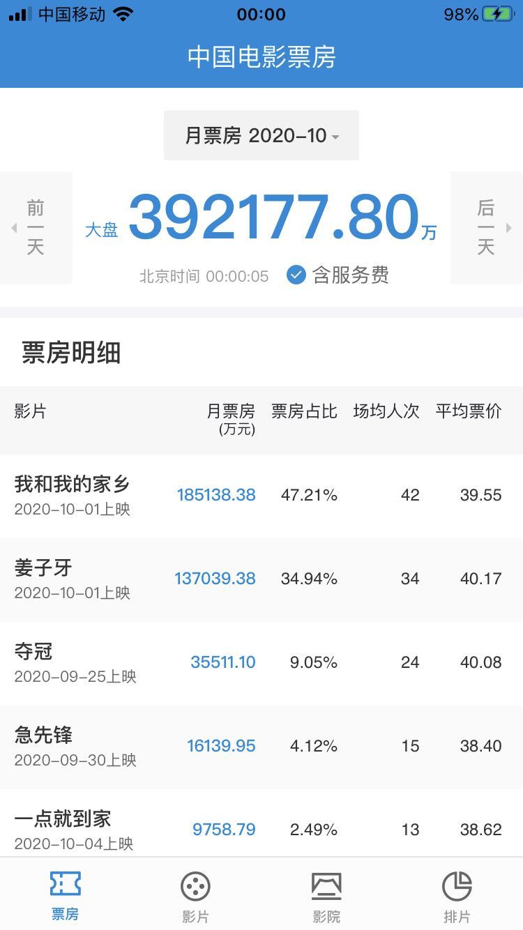 2020年國(guó)慶檔(10月1日-10月8日)落下帷幕,據(jù)國(guó)家電影專項(xiàng)資金辦公室“中國(guó)電影票房APP”數(shù)據(jù)顯示,截至10月8日24時(shí),2020年國(guó)慶檔票房達(dá)39.2億元,取得中國(guó)影史國(guó)慶檔票房第二的成績(jī)。