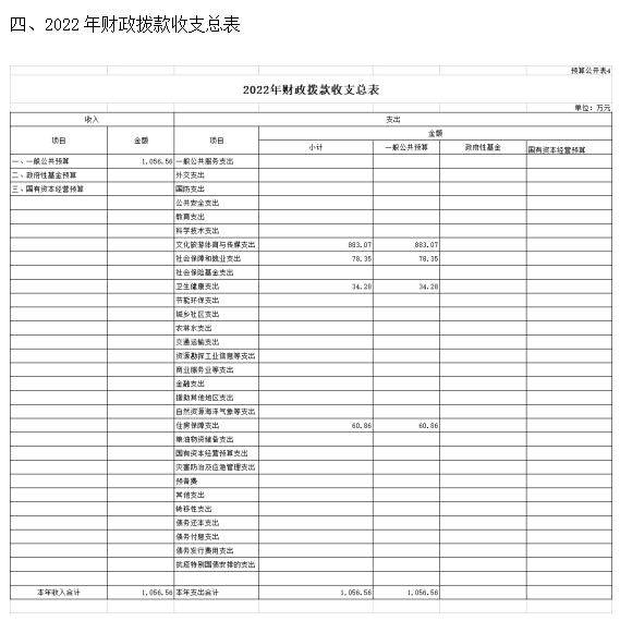 一、2022年預(yù)算收支總表