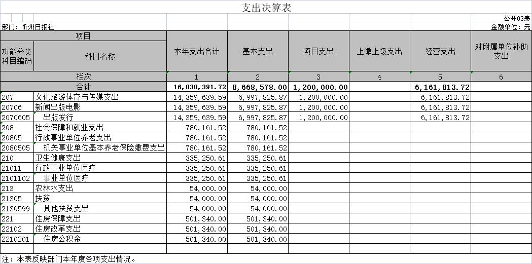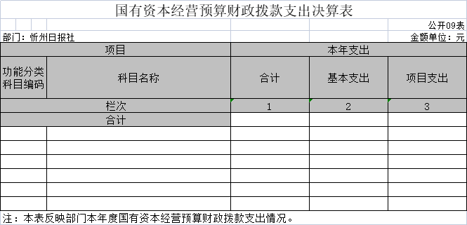 說明:忻州日?qǐng)?bào)社沒有使用國有資本經(jīng)營預(yù)算安排的支出,故本表無數(shù)據(jù)。